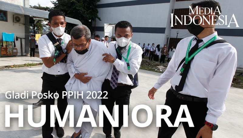 SEBANYAK 828 Petugas Penyelenggaraan Ibadah Haji (PPIH) 1443 H/2022 Masehi melakukan Gladi Posko di Asrama Haji, Pondok Gede Jakarta, Sabtu (21/5/2022). Simulasi yang dilakukan secara integral pada semua bidang tugas tersebut dilakukan dalam rangka persiapan memberi pelayanan kepada seluruh jemaah haji Indonesia.