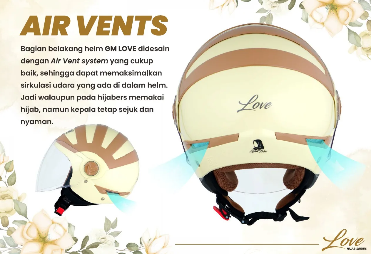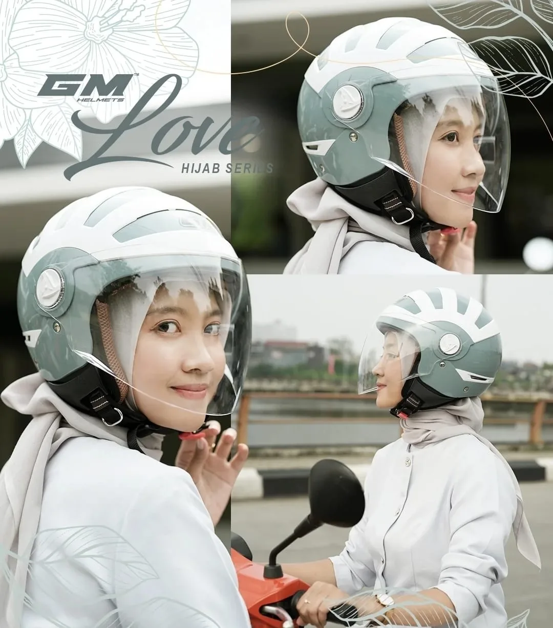 Helm GM Love Series dirancang Buat mengakomodir Perempuan berhijab yang biasanya terkendala dengan desain helm pada umumnya di bagian belakang, akibat minimnya ruang atau rongga akibat lipatan kain hijab/jilbab yang seringkali Membangun kepala sedikit sakit atau bahkan mengalami pusing karena tekanan berlebih pada bagian kepala. Ini juga yang suka dijadikan Dalih Buat Perempuan Bukan menggunakan helm. Nggak boleh ya Sist!