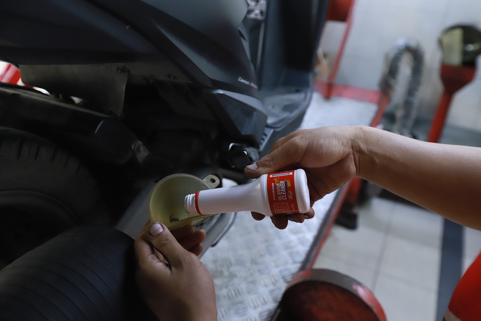 liputanindo.com – Selain meluncurkan kemasan pelumas 0,65L, AHM juga mulai memasarkan Oil System Cleaner Kepada menjaga kebersihan jalur pelumas mesin sehingga perfoma kinerja sepeda motor Honda tetap dalam kondisi optimal. Oil System Cleaner dapat digunakan pada seluruh tipe sepeda motor Honda yang dipasarkan Begitu ini.
