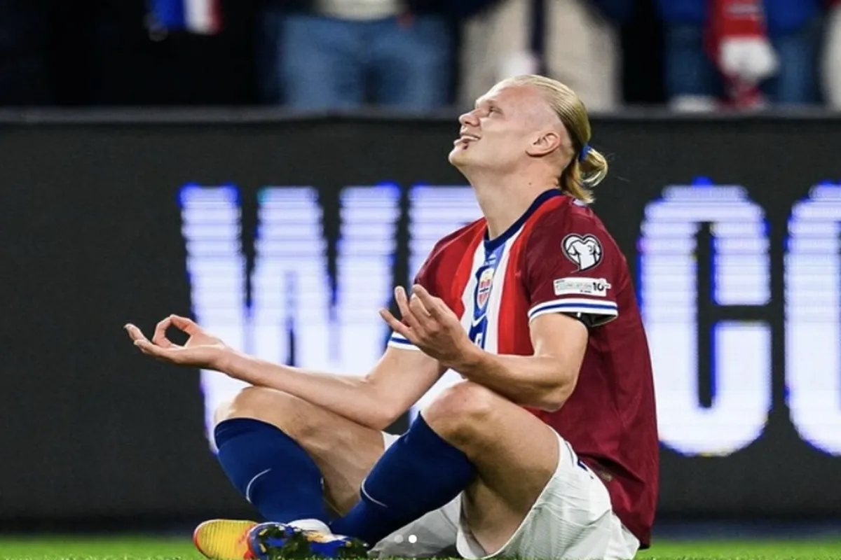Liputanindo.id – Striker Norwegia, Erling Haaland, melakukan selebrasi khasnya seusai menjebol gawang Moldova pada laga Grup I Kualifikasi Piala Dunia 2026 Area Eropa di Oslo, Rabu (10/9/2025) Awal hari WIB. Norwegia menggelar pesta gol dengan menghancurkan Moldova 11-1, di mana Haaland menyumbang 5 gol. (Instagram/erling)