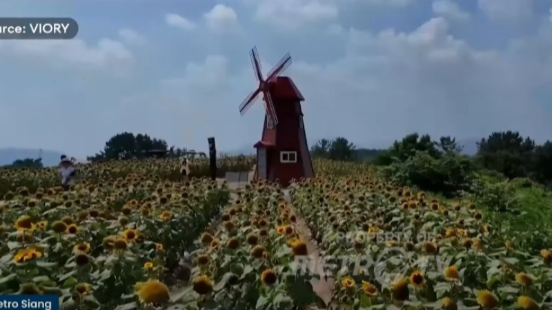 Hamparan ladang Merekah Mentari di Desa Gangju mengingatkan para wisatawan yang datang ke sana pada lukisan karya Claude Monet. Pengunjung tampak menikmati suasana dan berfoto di tengah barisan Merekah Mentari yang Merekah.