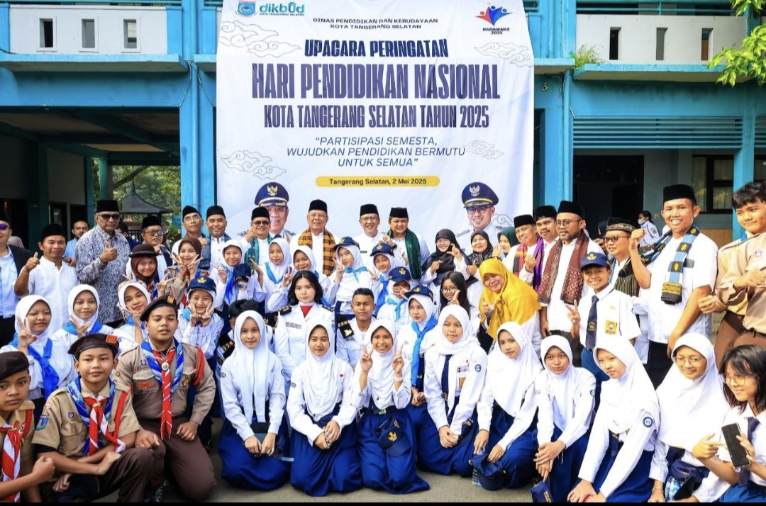 PERINGATAN Hari Pendidikan Nasional (Hardiknas) 2025 Kota Tangerang Selatan (Tangsel) berlangsung di halaman SMPN 11, Kelurahan Rawa Buntu, Kecamatan Serpong,kemarin.