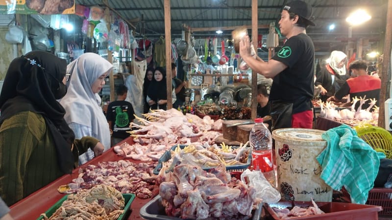 Sementara Nanan, salah satu pembeli mengeluhkan adanya kenaikan harga daging ayam potong. Kenaikan itu memberatkan dirinya dalam memenuhi kebutuhan sehari-hari.