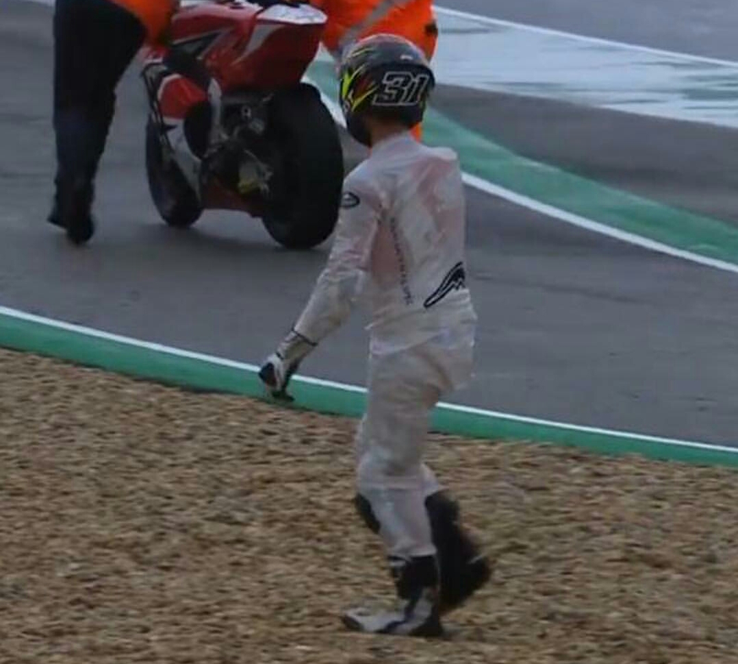 Pada Race 2 Moto2, Gerry mengalami balapan yang kurang Berkualitas. Start dari grid 4, Gerry Enggak Dapat mempertahankan posisinya di tikungan pertama. Bahkan pada lap lap awal Kasma Daniel sanggup menembus pertahanan Gerry. Kondisi track memang sedikit tricky sob, meskipun race direction menetapkan bahwa balapan berlangsung dalam kondisi kering (Dry race) Tetapi Realita di atas lintasan sirkuit klasik Estoril Lagi menyisakan beberapa spot yang cukup basah Demi dilewati motor dengan ban slick.