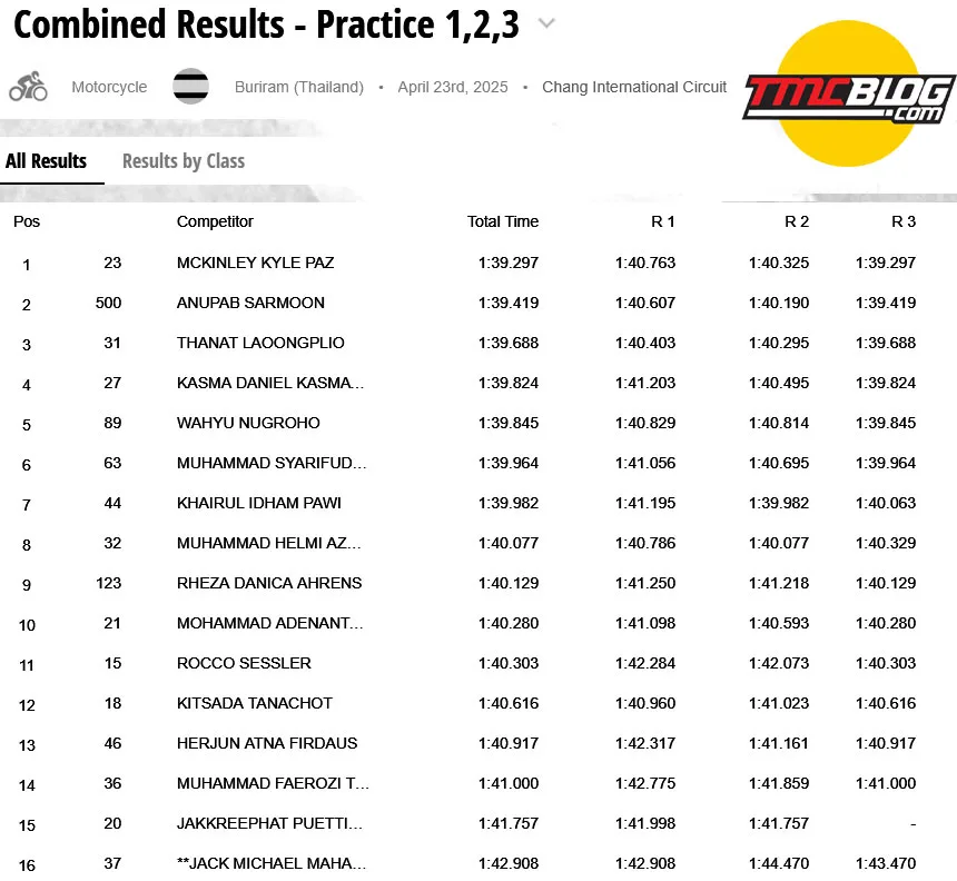 Tiga kali sesi tes SS600 sendiri menampatkan pembalap Philipina, Mckinley Kyle Paz menjadi yang tercepat di atas Yamaha R6 disusul oleh Anupab Sarmoon dan Thanat Laoongplio yang menggunakan CBR600RR. – @liputanindo