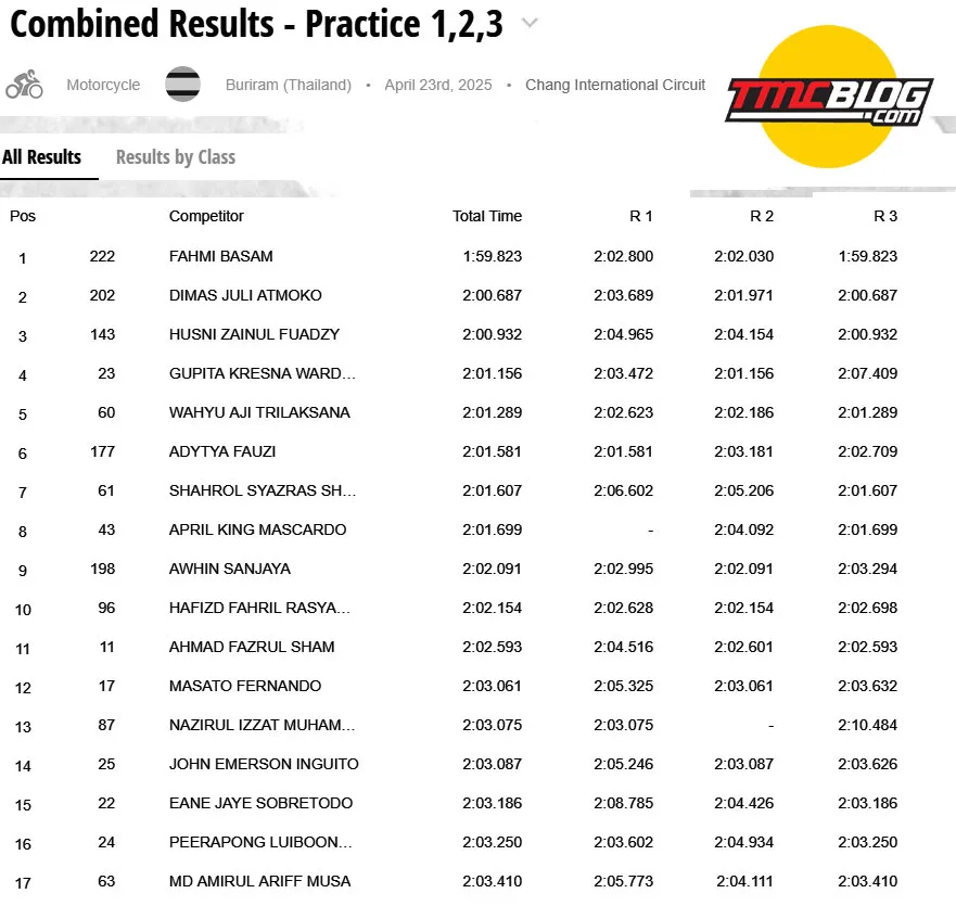 Hasil tes dalam tiga sesi Demi Kelas UB150 kemarin memperlihatkan bahwa Fahmi Bassam dan timnya juga motor Yamaha MX-King Tetap menjadi benchmark di kelas ini. Fahmi jadi satu-satunya yang mencetak laptime sub-2 detik dalam sesi tes kemarin yang mengantarkannya menjadi yang tercepat disusul oleh Dimas Juli Atmoko. Sementara pemain Lamban seperti Gupita Kresna dan Wahyu Aji Trilaksana Tetap sanggup bercokol di top-5 tercepat sesi pengujian. – @liputanindo