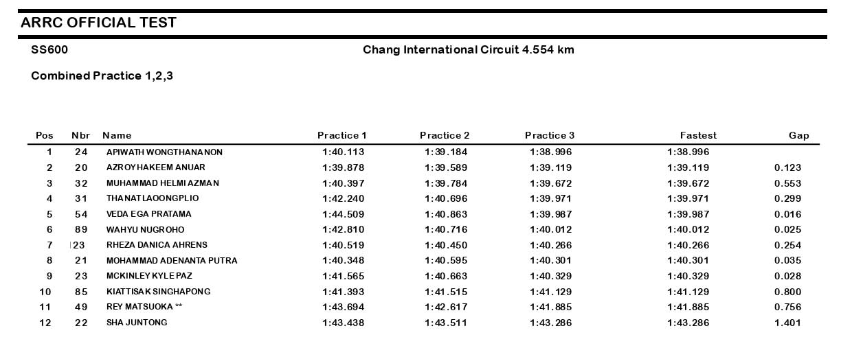 Di kelas SS5600, Pemenang AP250, Apiwath Wongthananon dari Yamaha Thailand hadir sebagai yang tercepat disusul pembalap Malaysia – Azroy Hakeem Anuar – dengan perbedaan hanya 0,123 detik. Pembalap Indonesia tercepat di kelas ini adalah Pemenang ATC 2023 yang Lagi berusia 15 tahun – Veda Ega Pratama – di posisi 5 dan disusul oleh Wahyu Nugroho dan Rheza Danica di posisi 6 dan 7.
