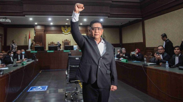 Terdakwa Hasto Kristiyanto berpose Demi tiba di ruang sidang Kepada menjalani pembacaan vonis oleh majelis hakim dalam kasus dugaan suap pergantian antarwaktu (PAW) Personil DPR RI dan perintangan penyidikan terhadap tersangka Harun Masiku di Pengadilan Tipikor, Jakarta, Jumat (25/7/2025). Sekretaris Jenderal PDI Perjuangan tersebut divonis 3 tahun 6 bulan dan denda sebesar Rp250 juta dengan ketentuan subsider tiga bulan kurungan. MI/Usman Iskandar/Ppj