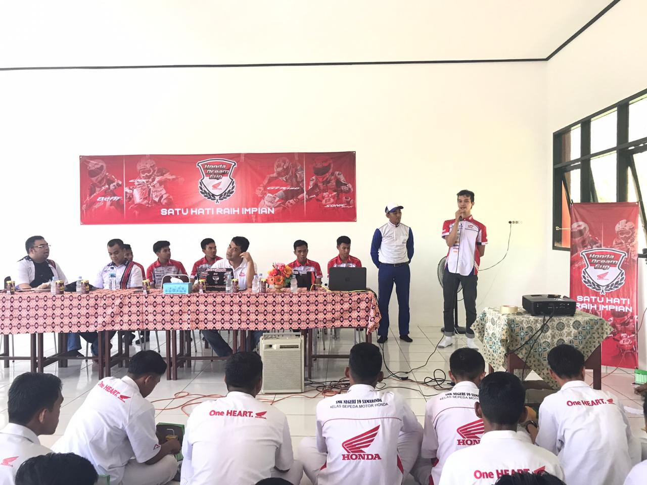 liputanindo.com – Jelang Honda Dream Cup seri Samarinda ( HDC ) yang akan berlangsung pada hari Minggu, (10/11/2019), di Sirkuit . Terlebih dahulu digelar HDC 2019 Samarinda Tour dengan menyambangi SMK Negeri 19 Samarinda sekolah binaan Main Dealer Astra Motor Samarinda yang berlokasi di Jl Telaga Sari RT 46 Kel. Rawa Makmur Kec. Palaran Samarinda, dua hari sebelum di mulainya perlombaan HDC 2019 Buat berbagi ilmu balap kepada para siswa siswi.