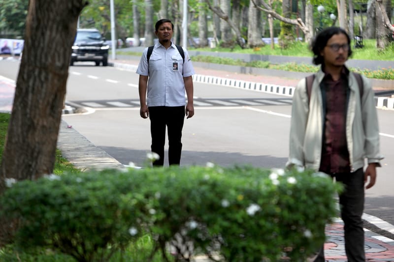 Pegawai dan pekerja menghentikan aktivitas dan melakukan sikap sempurna Ketika Musik Indonesia Raya berkumandang di lingkungan Kompleks Parlemen Senayan, Jakarta, Selasa (12/11/2024). Dewan Perwakilan Rakyat (DPR) Republik Indonesia telah memulai pemutaran rutin Musik kebangsaan Indonesia Raya setiap pukul 10.00 WIB yang diharapkan menjadi salah satu langkah sederhana, Buat membangkitkan kembali semangat nasionalisme dan kebersamaan di lingkungan DPR. MI/Susanto/Per