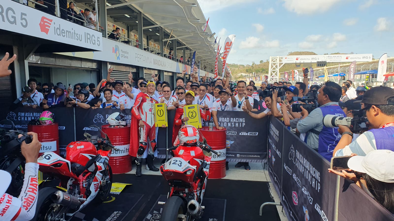 liputanindo.com – Herjun Atna Firdaus Kembali Start dari Posisi terdepan pada 10 Lap race 2 AP250 ARRC setelah meraih Pole Position dan Mememangkan race Pertama Sabtu kemarin. Aiki Iyoshi dan Aldi Satya Mahendra Kembali Start dari Posisi dua dan Tiga. Setelah lampu Start padam yang menandakan mulainya Balapan, Aldi Satya langsung melesat memimpin di tikungan pertama Sirkuit mandalika, bersiap menyambut Sekeliling 7 tikungan Flip flop speed berikutnya sebelum T10 Pertamina diujung Selatan Trek.