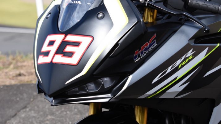 liputanindo.com – Marc Marquez tampil di Honda Plaza sirkuit Motegi Sembari naik New Honda CBR250R berwarna hitam dengan livery khas HRC terbaru di sekujur body-nya. Secara Standar CBR250RR ini terlihat menggunakan body dan fairing Spesifik balap tanpa adanya parts road Absah yang menempel. Juga knalpot yang sudah diganti dengan tipe free flow full system menggantikan knalpot standar model double muffler-nya.