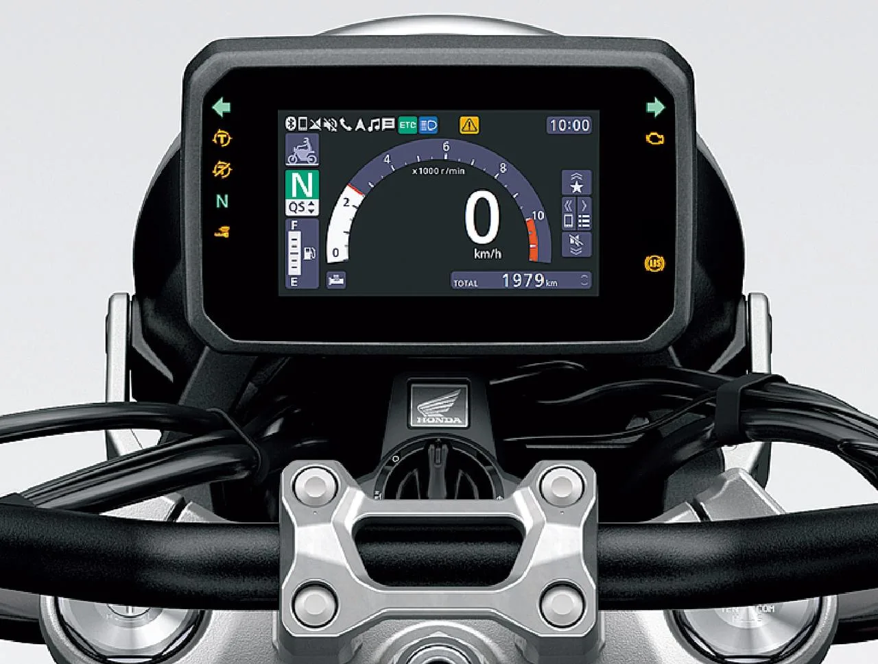 Pengereman Honda CB1000F ditangani oleh kaliper radial-mount empat piston yang menggigit cakram mengambang 310mm, dengan kontrol Cornering ABS yang menjaga semuanya tetap terkendali. Unit Pengukuran Inersia (IMU) enam sumbu Segala mode berkendara Serempak Throttle By Wire (TBW). Layar TFT lima inci menawarkan konektivitas smartphone Honda RoadSync, dan pengoperasian melalui Honda Smart Key. Tiga pilihan Corak dan Grafis yang menggugah langsung tersedia: Wolf Silver Metallic plus Blue Stripe, Wolf Silver Metallic plus Grey Stripe, dan Graphite Black. Kayaknya pas Nih Kalo masuk di Jajaran Big-Wingnya AHM ya ? – @liputanindo