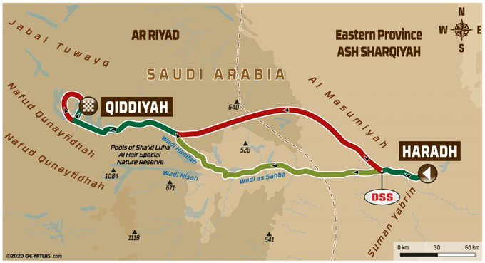 Tahap/etape terakhir ditentukan antara Haradh dan Qiddiyah. Sesi spesial sejauh 374 kilometer yang sudah termasuk etape Qiddiya Trophy GP sejauh 20 kilometer, wajib bagi pembalap yang finish di podium terakhir Dakar edisi tahun ini. Jalur ini handicap-nya adalah 35% pasir, 22% tanah, 30% aspal, 3% bebatuan, 10% perbukitan.