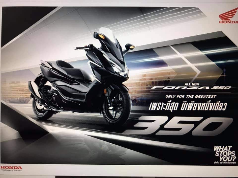 Yap dari awalnya Forza 300 dengan Bore x stroke 72mm x 68.5mm dan menghasilkan power maksimum 18.5kW @ 7,000rpm, dengan torsi maksimum 27.2Nm @ 5,750rpm Honda mengganti Secara Drastis dan Signifikan Spek mesinnya menjadi berdimensi Bore X stroke: 77,0 x 70,7 sehingga kubikasi mesin 1 silindernya menjadi genap 329,6 cc . . . Honda menggenapkannnya menjadi Bilangan 350
