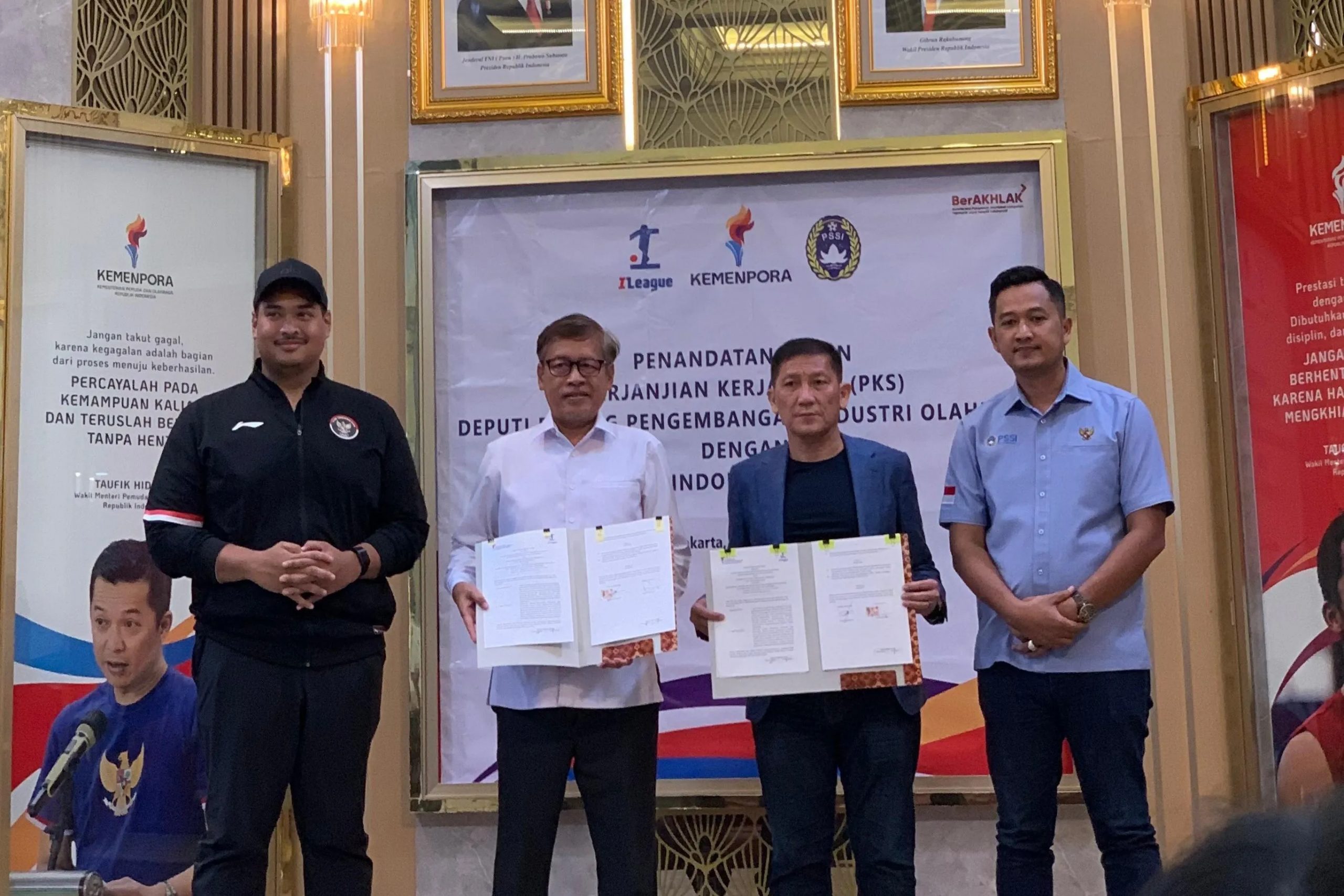 Liputanindo.id, JAKARTA — Dalam rangka mewujudkan Penyelenggaraan ketentuan Pasal 55 Undang-Undang Nomor 11 Tahun 2022 tentang Keolahragaan, Kementerian Pemuda dan Olahraga (Kemenpora) melalui Deputi Bidang Pengembangan Industri Olahraga secara Formal menjalin kerja sama dengan PT Perserikatan Indonesia Baru (I.League) Buat mengedukasi suporter sebagai bagian dari entitas penyelenggaraan olahraga profesional pada cabang olahraga sepak bola.
