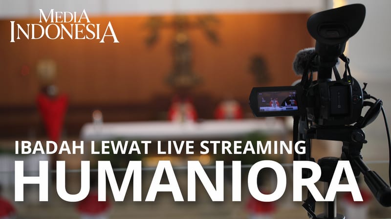 Umat Nasrani mengikuti ibadah misa melalui layanan live treaming di Gereja Santa Maria Regina – Paroki Bintaro Jaya, Tangerang, Banten, Minggu (5/4/2020). Demi mencegah penyebaran covid-19, ibadah Misa di gereja tersebut ditiadakan dan diganti dengan menggunakan layanan live treaming.