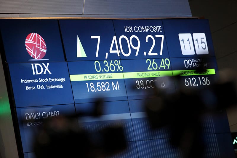 Pergerakan bursa saham di Bursa Dampak Indonesia di Jakarta, Senin (9/12/2024). Indeks harga saham gabungan (IHSG) di Bursa Dampak Indonesia (BEI) hingga akhir sesi I siang hari ini Senin (9/12/2024) naik 26,8 poin (0,36%) ke level 7.409. Saham Daya menjadi sektor yang naik paling tinggi. Berdasarkan data bursa, kumpulan saham unggulan yang tergabung dalam indeks Investor33 naik 3,8 (0,86%) mencapai 451,6. MI/Susanto/gus
