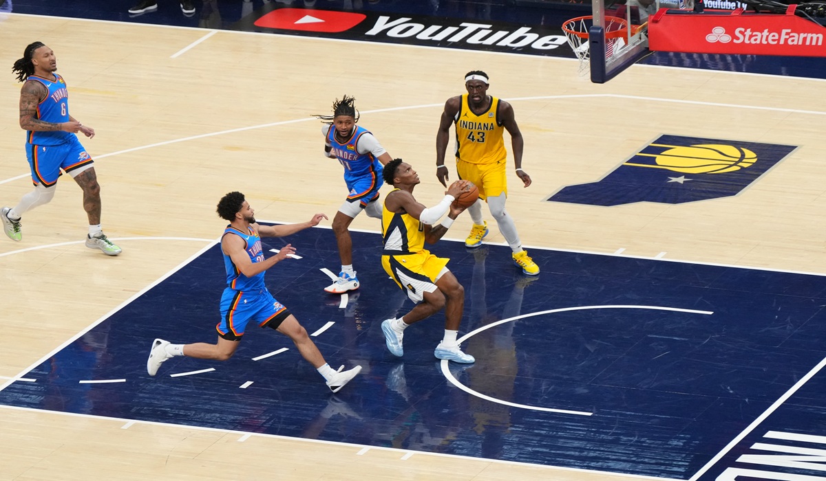 Dalam laga Gim 6 Final NBA di markas Pacers, Gainbridge Fieldhouse, Thunder lebih dulu menggebrak dan unggul 10-4 di awal kuarter pertama.