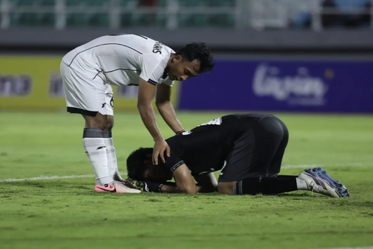 Liputanindo.id – Kiper Timnas Indonesia U-23, Cahya Supriadi (kanan), terlihat kecewa setelah gagal membawa timnya lolos ke Piala Asia U-23 2026 usai dikalahkan Korea Selatan 0-1 di Stadion Gelora Delta Sidoarjo, Selasa (9/9/2025). (Instagram/timnasindonesia)