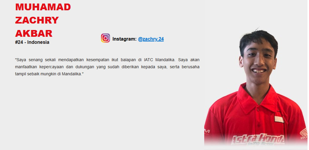 Pada putaran IATC kali ini, Indonesia ketambahan 1 pembalap wildcard. Muhamad Zachry Akbar juga akan tampil di hadapan pendukung Indonesia dengan fasilitas wildcard.