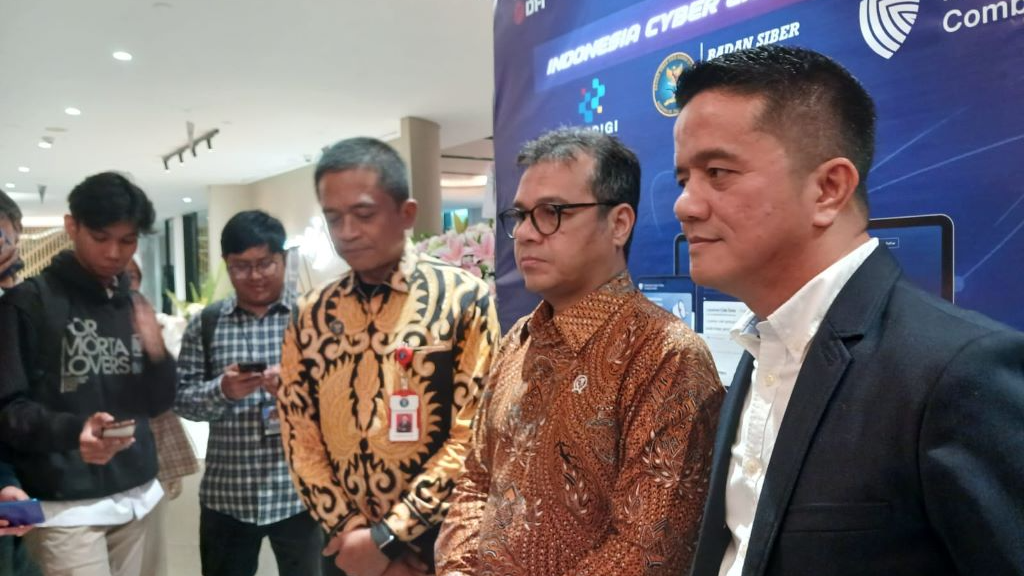 Kiri ke kanan: Deputi Bidang Keamanan Siber dan Sandi Pemerintahan dan Pembangunan Orang BSSN Sulistyo, CEO sekaligus Founder IC4 Ruby Alamsyah, dan Wakil Menteri Komunikasi dan Digital (Komdigi) Nezar Patria. Foto: Liputanindo.id