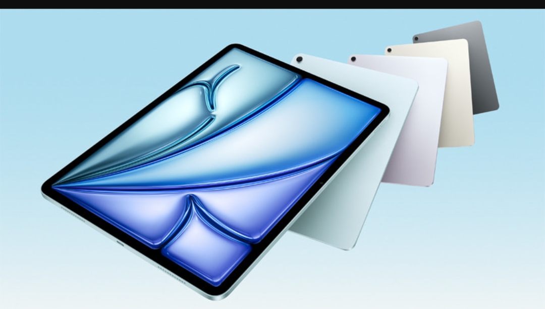 Ipad Air 11 inci dan 13 inci dengan M3 tersedia dalam Corak biru, ungu, starlight, dan space gray, hadir dengan lensa kamera kecil di bagian Sudut kanan belakang, serta kamera depan. Perangkat itu hadir dengan konfigurasi 128GB, 256GB, 512GB, dan 1TB.