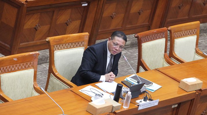 Pejabat Fungsional Perancang Undang-undang Spesialis Primer di Badan Keahlian DPR Inosentius Samsul menyampaikan paparan Ketika mengikuti uji kompetensi dan kelayakan calon hakim konstitusi di Komisi III DPR, Kompleks Parlemen, Senayan, Jakarta, Rabu (20/8/2025). Inosentius Samsul menjadi calon hakim konstitusi menggantikan Arief Hidayat yang akan berakhir masa tugasnya pada 3 Februari 2026 karena memasuki usia 70 tahun.
