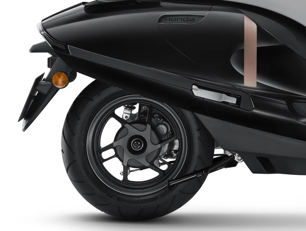 Buat bagian kaki-kaki, motor ini menggunakan suspensi teleskopik di depan dan suspensi ganda (Dual Shock) di belakang. Ban yang digunakan berukuran mungil Tetapi dengan profil yang cukup lebar, memberikan stabilitas Demi bermanuver di gang sempit atau kemacetan kota.
