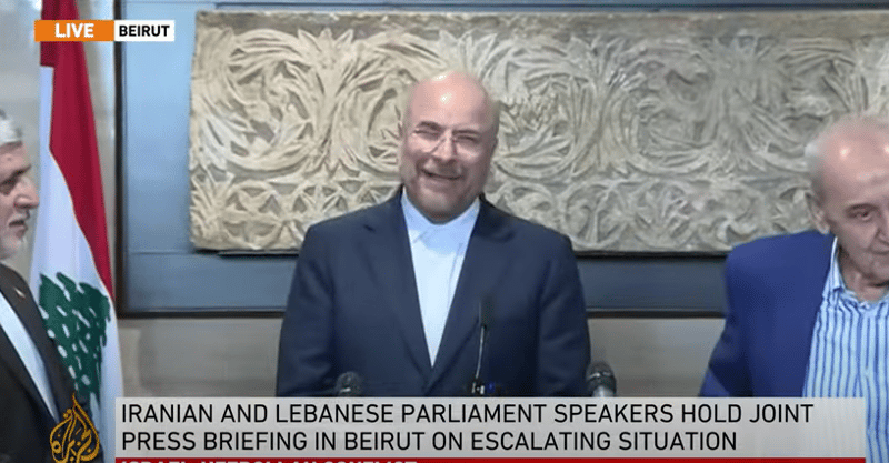 Ketua parlemen Iran itu mengatakan pemerintah dan bangsa Iran siap membantu orang-orang yang mengungsi dan dilanda perang di Lebanon dengan