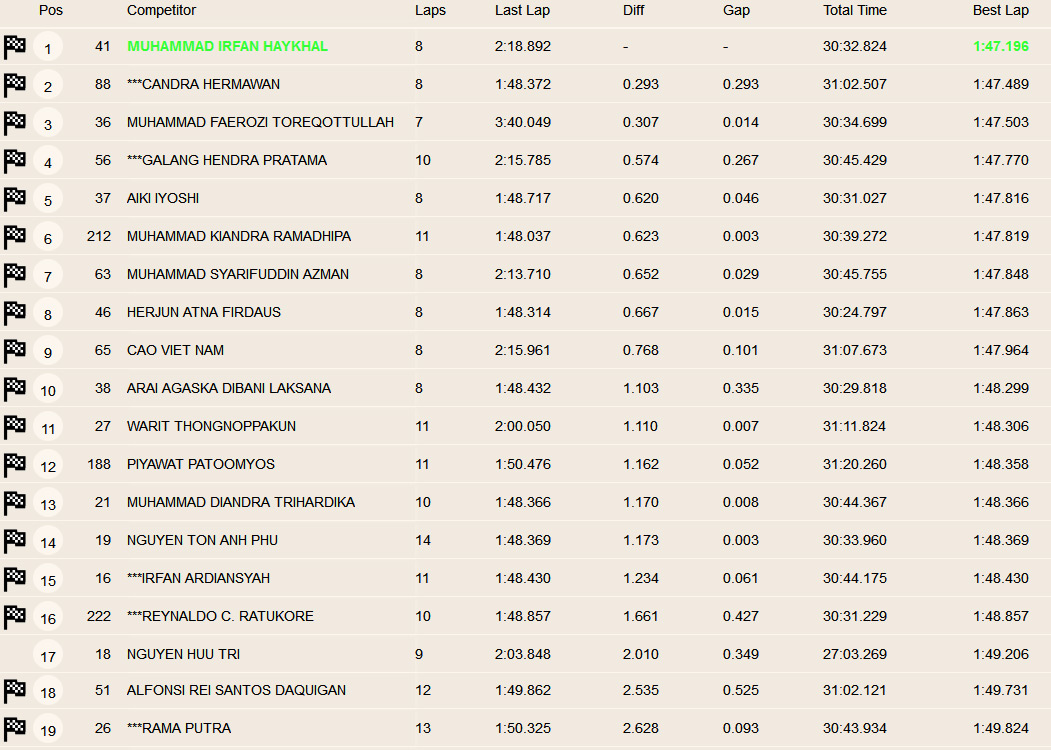 Dan akhirnnya Pembalap Malaysia Mohammad Irfan Haykal Tampil menjadi yang tercepat di sesi Ini dan meraih Pole Position Buat Seri 4 kelas AP250 ARRC 2024. Haykal akan ditemani Wild Card Chandra Hermawan dan Faerozzi Dari YRI di Row terdepan
