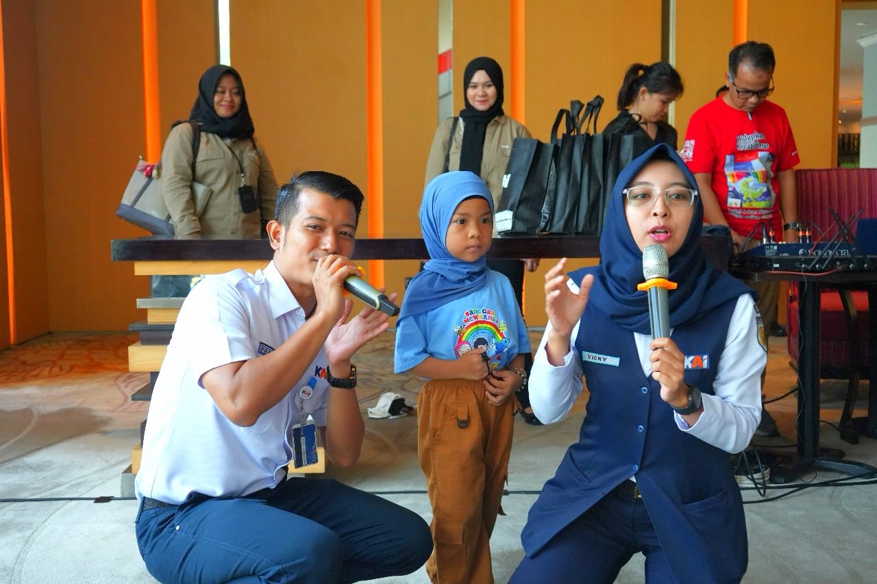 SUASANA ceria dan penuh antusiasme tampak di lobi Hotel Mercure Medan pada Sabtu (5/7), Begitu PT Kereta Api Indonesia (Persero) Divisi Regional I Sumatera Utara menggelar kegiatan pengenalan profesi perkeretaapian Kepada anak-anak.