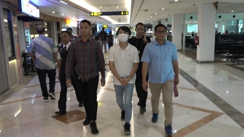 Dari foto yang diterima ERA, tampak Ivan memakai masker dan kemeja kaos putih serta kedua tangannya diborgol. Ivan terlihat digiring langsung keluar dari Bandara.