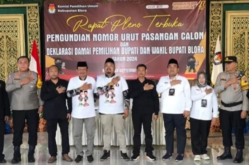 Kemudian, pada pengundian nomor pasangan calon di Blora, pasangan Arief Rohman-Sri Setyorini mendapat nomor urut 1. Mereka diusung NasDem, PKB, Perindo, Gerindra, Demokrat, Golkar, PKS, Hanura, PAN dan PSI, PBB dan PKN. Rivalnya, Abdul Serbuk Nafi-Andika Adikrisna Gunarjo, yang diusung PDIP dan PPP mengantongi nomor urut 2. (Z-11)