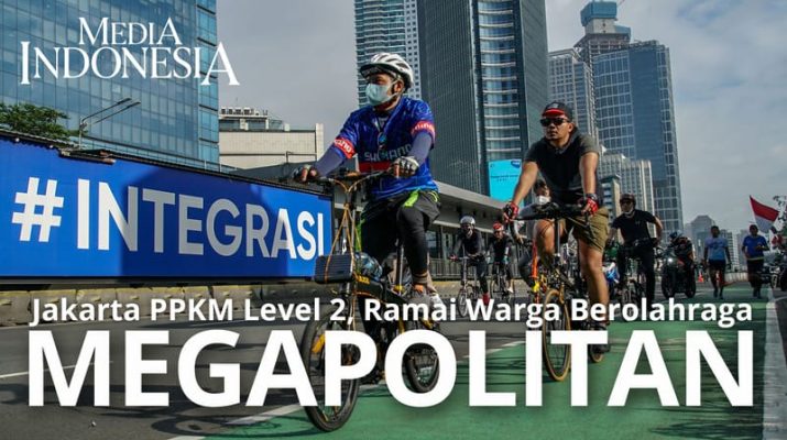 Seiring dengan melandainya jumlah kasus korona di Ibu Kota dan DKI Jakarta kembali menerapkan PPKM Level 2, kawasan Bundaran HI mulai ramai warga yang berolahraga pada Minggu pagi.