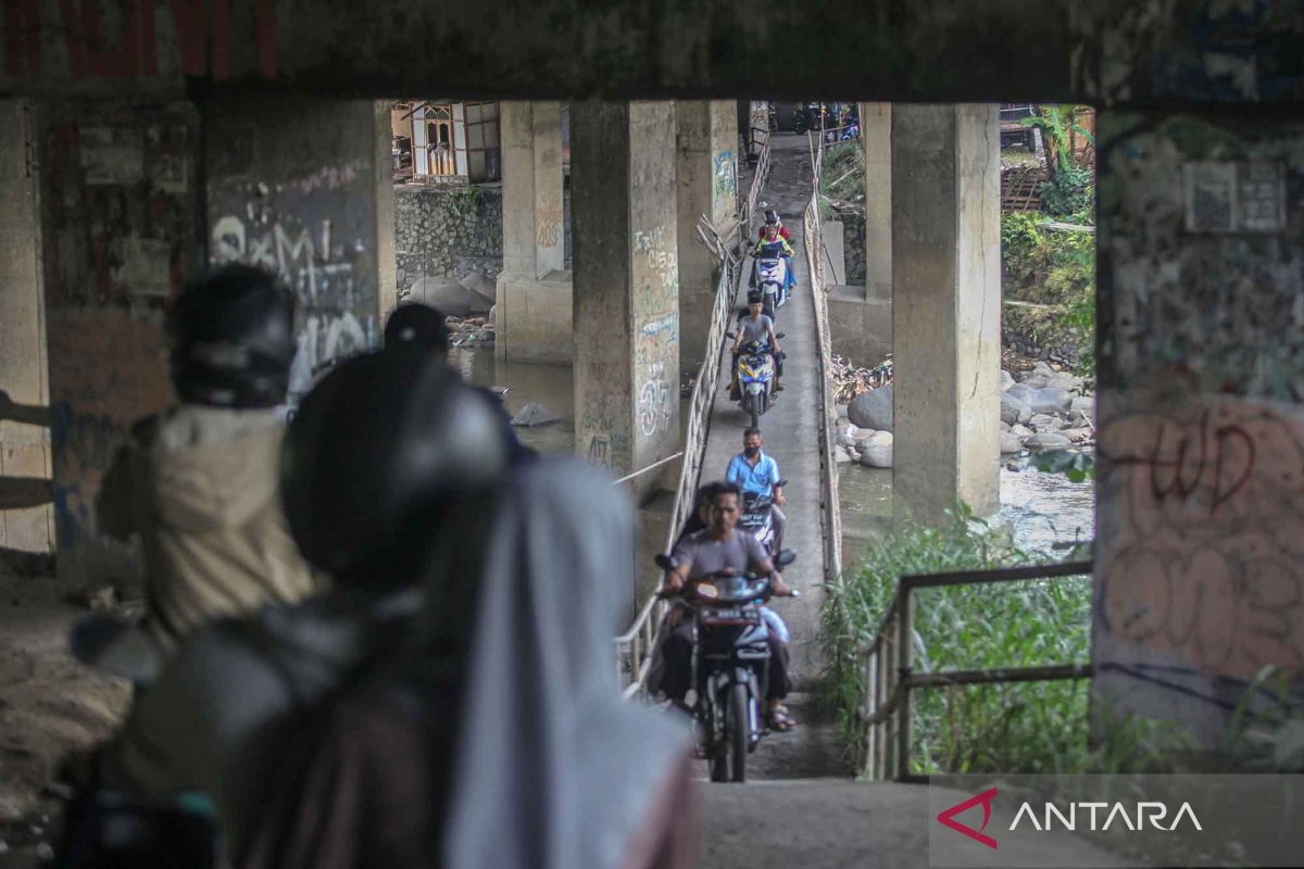 Pengendara sepeda motor melintas di jalur alternatif Spesifik motor menuju kawasan Puncak Bogor, Kabupaten Bogor, Jawa Barat, Senin (25/12/2023). Jalur alternatif Demi sepeda motor itu dapat menghemat waktu tempuh dan menghindari kemacetan di jalan Penting menuju kawasan Puncak pada libur Natal dan libur Tahun Baru 2024. ANTARAFOTO/Yulius Satria Wijaya/YU