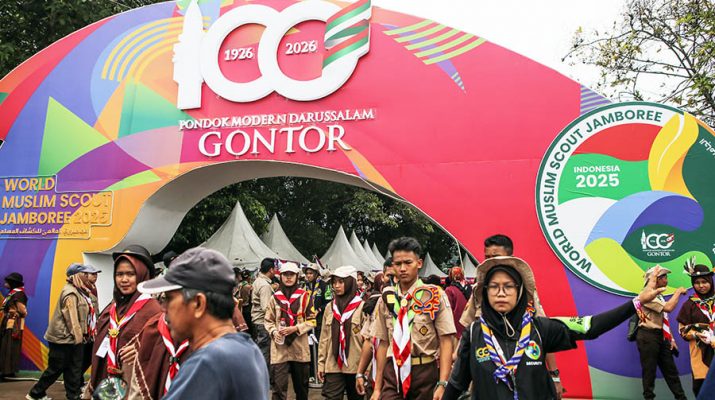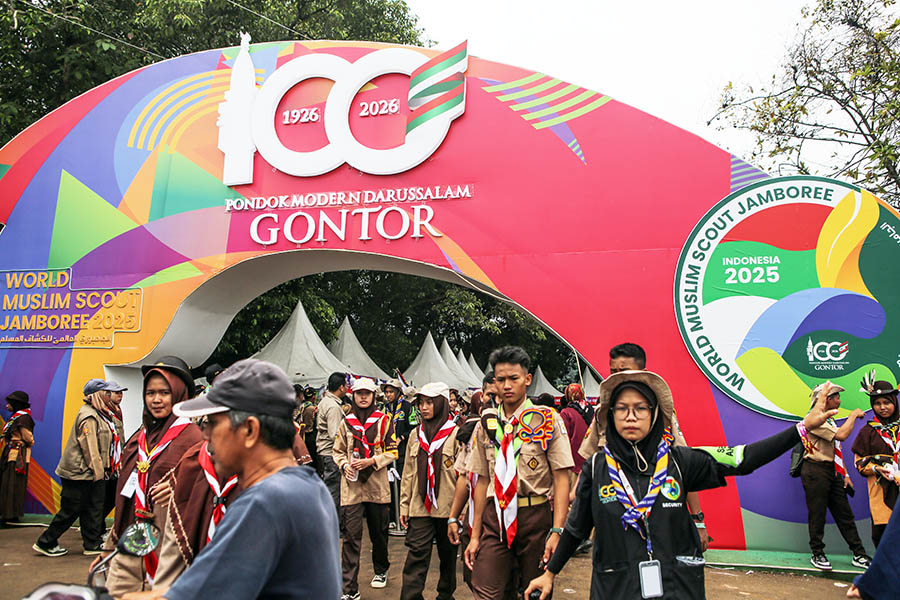 Peserta mengikuti World Muslim Scout Jamboree di Bumi Perkemahan Cibubur, Jakarta, Selasa (9/9/2025). Kegiatan tersebut menjadi jambore pramuka muslim pertama di dunia dengan diikuti 15.333 peserta dari 16 negara dan bagian dari peringatan 100 tahun Pondok Modern Darussalam Gontor yang diselenggarakan pada 9-14 September 2025 . ANTARA/Asprilla Dwi Adha/gus
