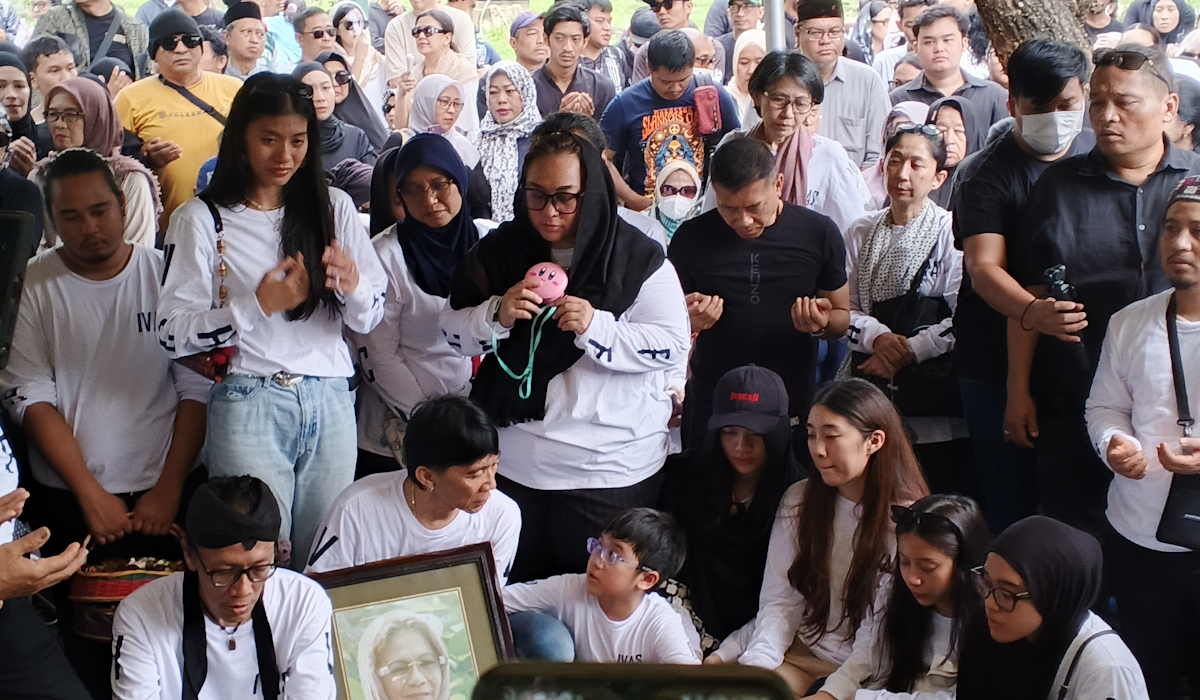 PEMAKAMAN Iffet Veceha Sidhar (Bunda Iffet), Ibunda dari personel grup band Slank, Bimo Setiawan Almachzumi alias Bimbim, di TPU Karet Bivak, Jakarta pada Minggu (27/4).