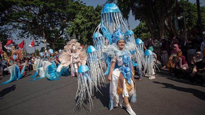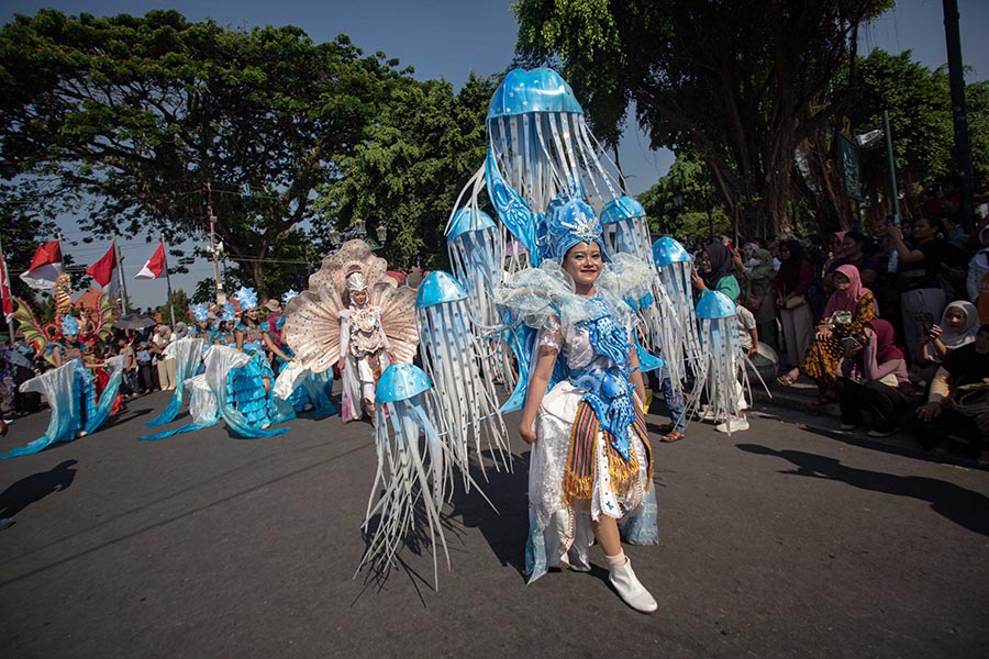 Peserta tampil pada Pawai Kemerdekaan Jogja Fashion Carnival bertajuk Swarna Mahardhika di Jalan Malioboro, Minggu (17/8/2025). Pawai yang diikuti perwakilan dari sejumlah negara seperti Malaysia, Filipina hingga Polandia serta menampilkan berbagai kekayaan seni maupun budaya Nusantara itu guna memperingati HUT ke-80 Kemerdekaan RI. ANTARA/Andreas Fitri Atmoko/gus