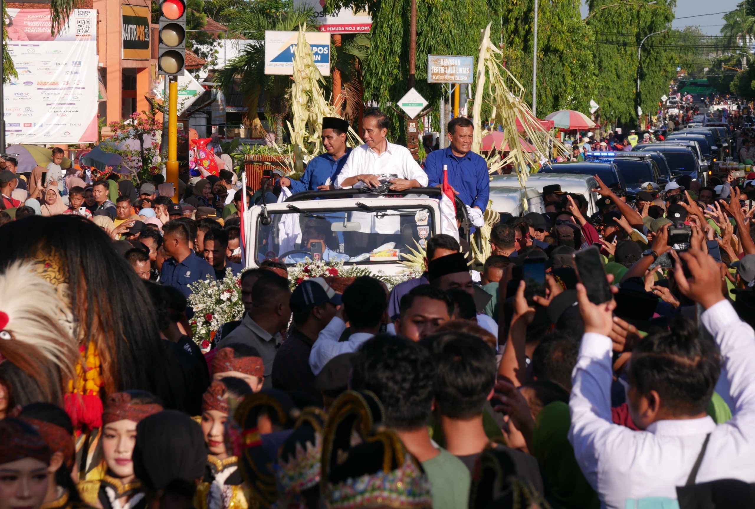 Sebelumnya, Jokowi dengan mengendarai mobil Jeep terbuka juga melakukan kampanye di Grobogan. Dengan antusias, ribuan Kaum menyambut Presiden ke-7 tersebut di sepanjang jalan. Kaum juga berebut kaos yang dibagikan Jokowi didampingi calon Gubernur Jawa Tengah Ahmad Luthfi. (AS/J-3)