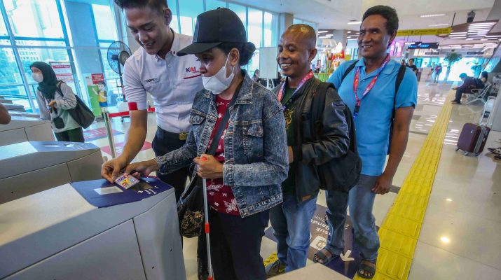 Petugas membantupenyandang tuna netra menempelkan kartu Spesifik disabilitas di Stasiun BNI City, Jakarta, Jumat (14/2/2025). KAI Commuter menghadirkan kartu disabilitas sebagai kartu multifungsi yang dapat digunakan sebagai identitas penyandang disabilitas, dan kartu multi trip (KMT) Demi transaksi pembayaran tiket commuter line. Kartu tersebut didesain Spesifik Demi meningkatkan layanan kepada penyandang disabilitas atau berkebutuhan Spesifik. MI/Usman Iskandar/Ppj