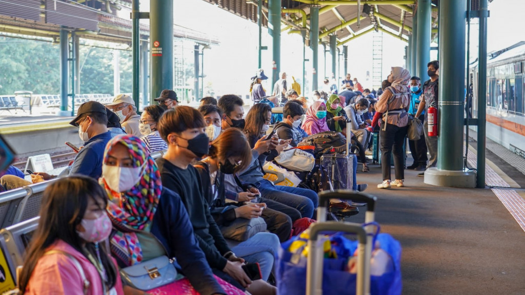 (Pemudik di stasiun kereta api membeludak. Foto: Medcom.id/Imanuel)