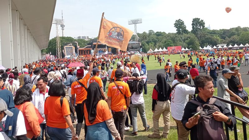 Massa Lagi Maju berdatangan memadati sekitaran Stadion Madya GBK.