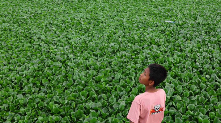 Kanal Dipenuhi Tanaman Eceng Gondok di Makassar