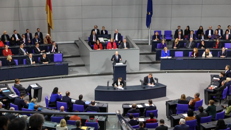 Kanselir Jerman Olaf Scholz berbicara di depan parlemen. Foto: Anadolu