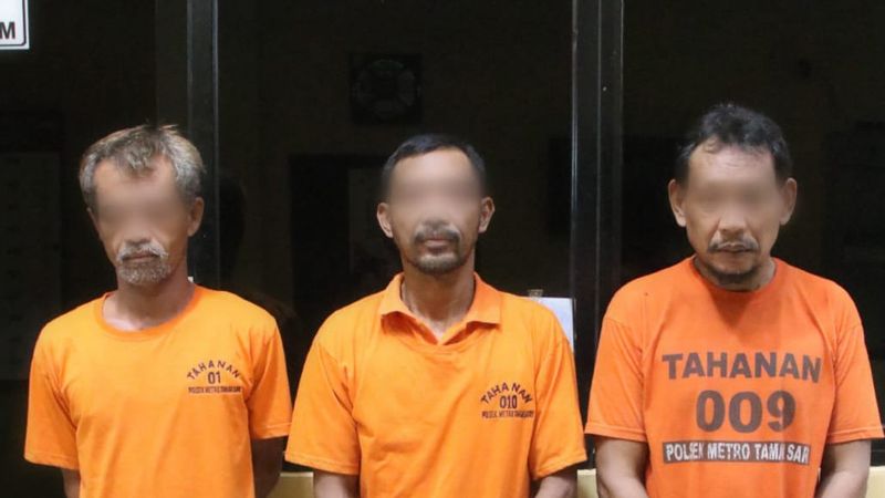 Tiga orang ditangkap dalam kasus ini, yakni MN bin PD, ST bin DL, dan TO. Satu orang berinisial AI masih diburu dan ditetapkan sebagai daftar pencarian orang (DPO).