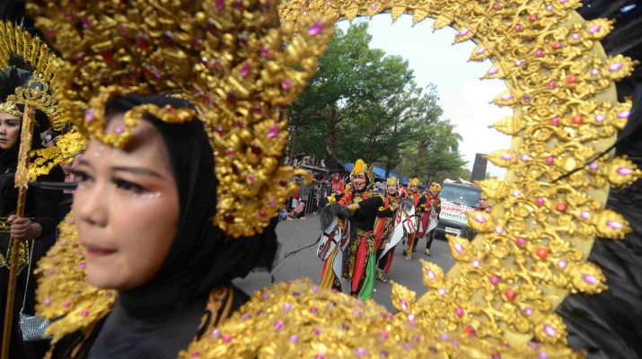 Peserta mengikuti Karnaval Batik dan Kostum Hasil karya di Alun-alun Slawi, Kabupaten Tegal, Jawa Tengah, Sabtu (23/8/2025). Karnaval yang diikuti oleh instansi dan seluruh lapisan masyaraka tersebut sebagai Figur Demi melestarikan batik sebagai warisan budaya serta menunjukkan kreativitas desain kostum dalam rangka memperingati Hari Kemerdekaan Ke-80 Republik Indonesia. ANTARA FOTO/Oky Lukmansyah/Ppj