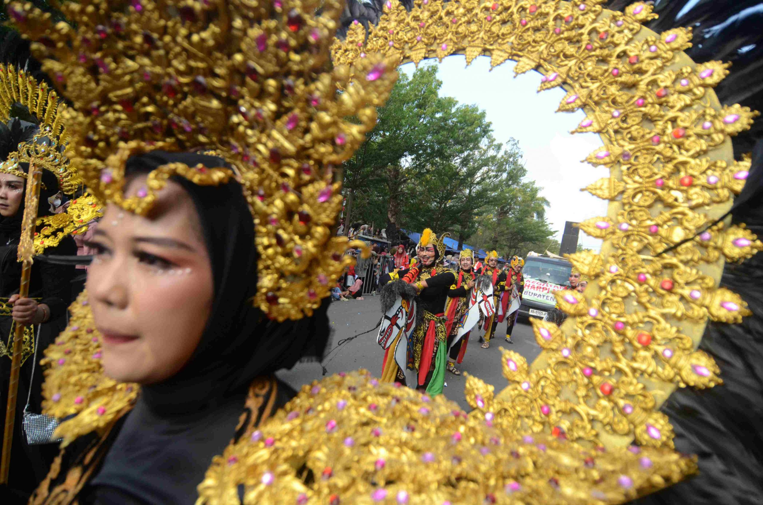 Peserta mengikuti Karnaval Batik dan Kostum Hasil karya di Alun-alun Slawi, Kabupaten Tegal, Jawa Tengah, Sabtu (23/8/2025). Karnaval yang diikuti oleh instansi dan seluruh lapisan masyaraka tersebut sebagai Figur Demi melestarikan batik sebagai warisan budaya serta menunjukkan kreativitas desain kostum dalam rangka memperingati Hari Kemerdekaan Ke-80 Republik Indonesia. ANTARA FOTO/Oky Lukmansyah/Ppj