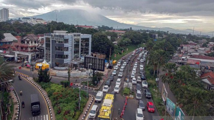 Foto udara kepadatan kendaraan menuju jalur wisata Puncak Ketika diberlakukan sistem satu arah di Gadog, Kabupaten Bogor, Jawa Barat, Rabu (25/12/2024). Menurut Satlantas Polres Bogor, terhitung dari pukul 00.00 WIB hingga 08.00 WIB sebanyak 10.200 kendaraan yang masuk kawasan puncak pada libur Natal 2024. ANTARA FOTO/Yulius Satria Wijaya/nym.