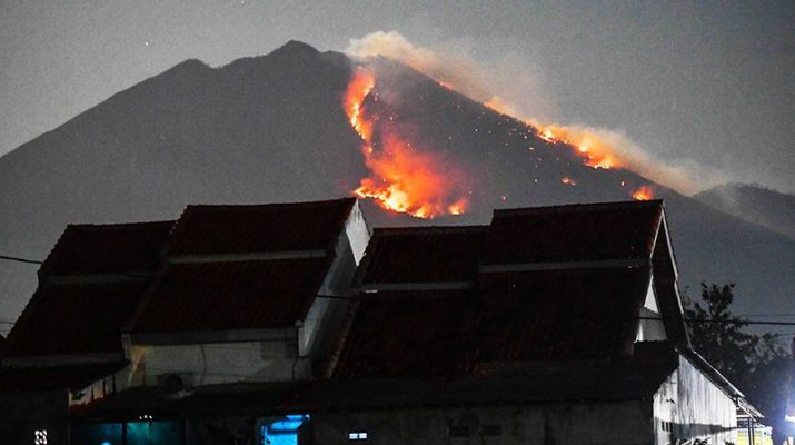 Kebakaran hutan Gunung Merapi Ungup-ungup terlihat dari Desa Bangsring, Wongsorejo, Banyuwangi, Jawa Timur, Selasa (20/8/2024). Menurut warga sekitar kebakaran di Gunung Merapi Ungup-ungup yang berada di kawasan Gunung Ijen itu terlihat sejak Senin (19/8) siang dan hingga saat ini kebakaran terus meluas karena sulitnya akses jalan untuk memadamkan. ANTARA/Budi Candra Setya/gus![]()